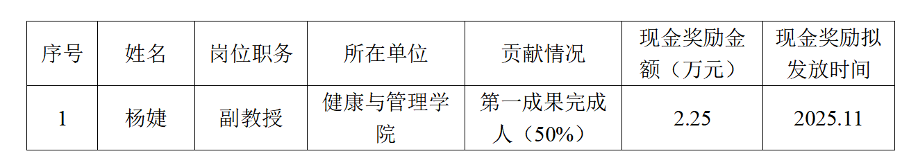 根据《财政部 税务总局 科技部关于科技人员取得职务科技成果转化现金奖励有关个人所得税政策的通知》(财税〔2018〕58号)、《科技部 财政部 税务总局关于科技人员取得职务科技成果转化现金奖励信息公示办法的通知》(国科发政〔2018〕103号)、《山西中医药大学促进科技成果转移转化实施方案的通知》(山中医科〔2020〕6号)及《山西中医药大学科技成果转化管理办法》(山中医校科〔2025〕3号)有关规定,现对我校“一种基于耦合式生成对抗网络的自动计划优化系统”的职务科技成果转化现金奖励相关信息公示如下: